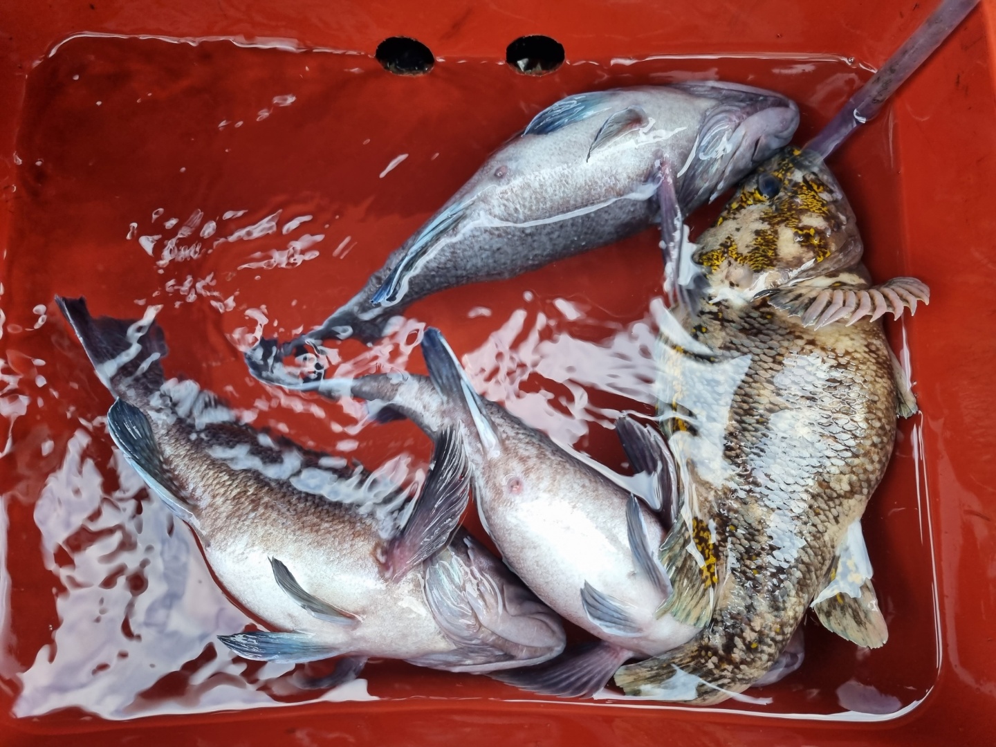 참우럭이 많이 나왔구..돌우럭은 몃마리 광어는 한마리 방생하고 11마리~~잡았는대~