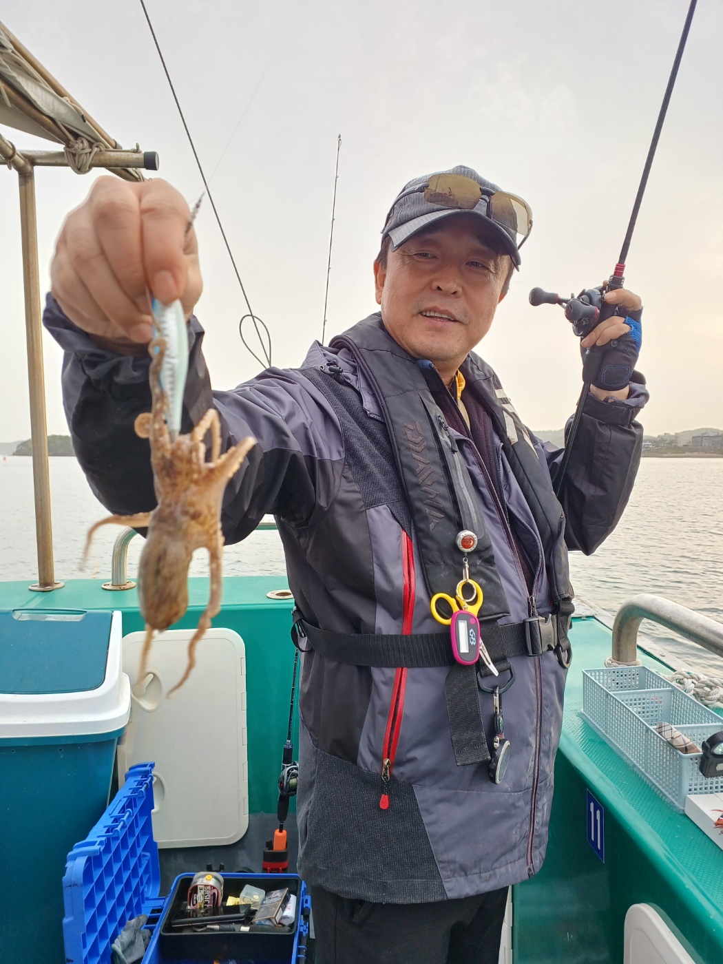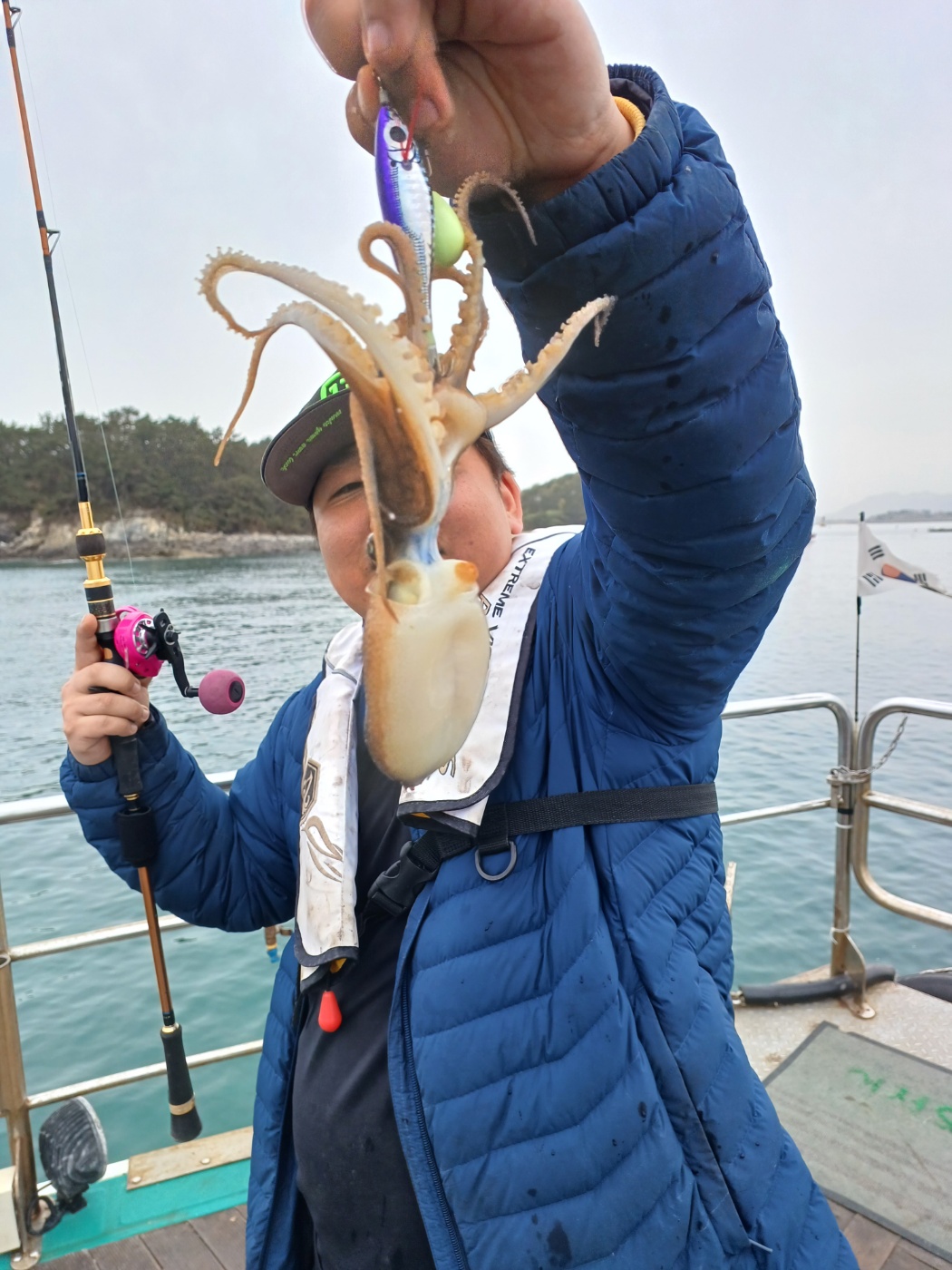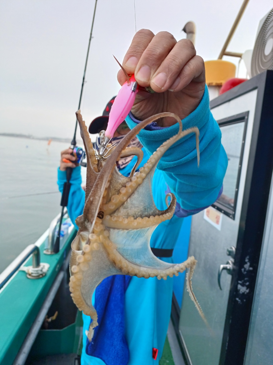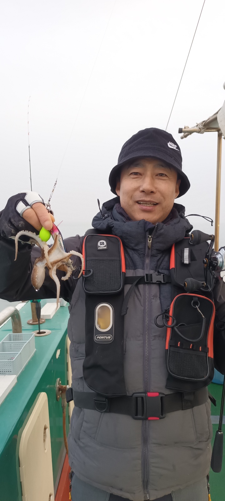 날물 정조끝나고 들물에는 역시 사리물때라 어렵다 판단하고 조사님들께 양해를 구하고 다운샷으로 변경하였으나 고기가 나오질 않네요. 물의 속도가 느려지는 시간 다시 쭈꾸미로 하고 포인트 도착하니 왕쭈꾸미들이 연거푸 나옵니다.