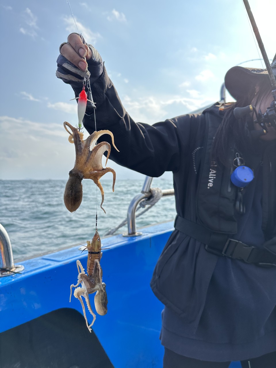 오늘은 바람이 좀 있었나큰 갑오징어와 쭈꾸미가 오전에는잘 나와 주었네요.어제는 단체 독배로 인해 12시입항했네요.조황사진을 못찍었네요.고생하셨습니다.