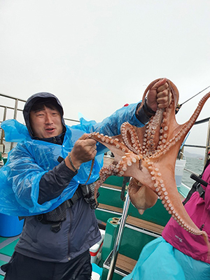 우리 조카사위는 2.5kg 나가는 문어도 올리더라고요.